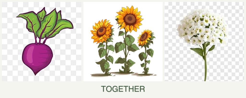 Planting beets, sunflowers, and alyssum together offers several benefits: