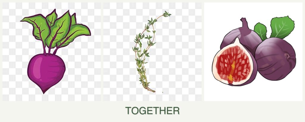 - Nutrient Needs: Beets and figs require nutrient-rich soil, whereas thyme can thrive in poorer soils, making it less competitive for nutrients.