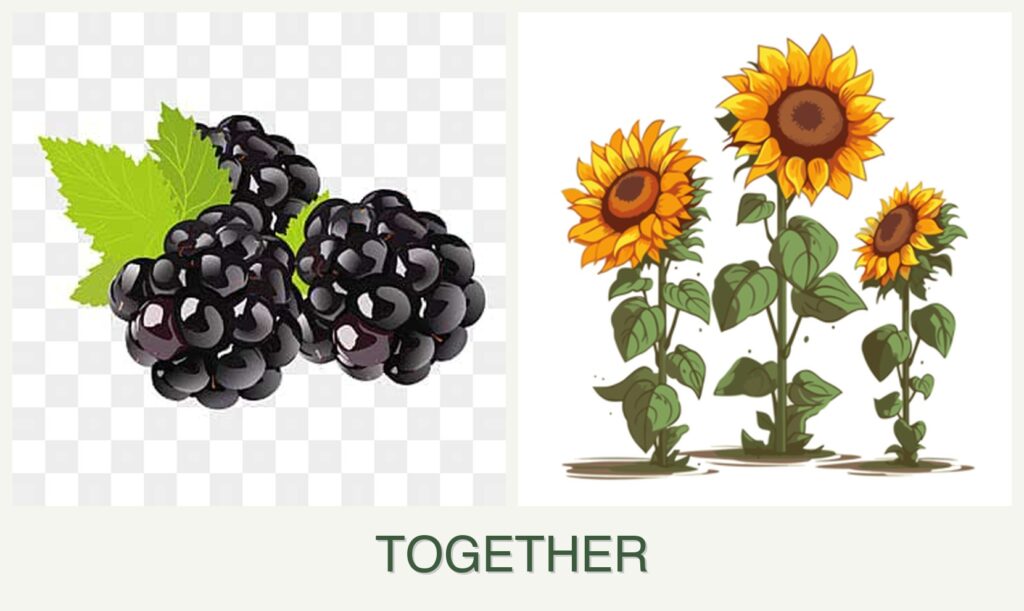 - Resource Competition: Ensure sunflowers do not overshadow blackberries, as this could limit sunlight exposure.