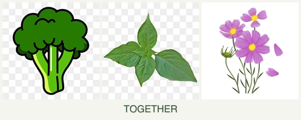 Planting broccoli, basil, and cosmos together offers several advantages: