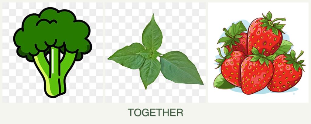 - Pest Control: Basil can repel pests like aphids and beetles, which benefits both broccoli and strawberries. Strawberries can attract pollinators that help basil.