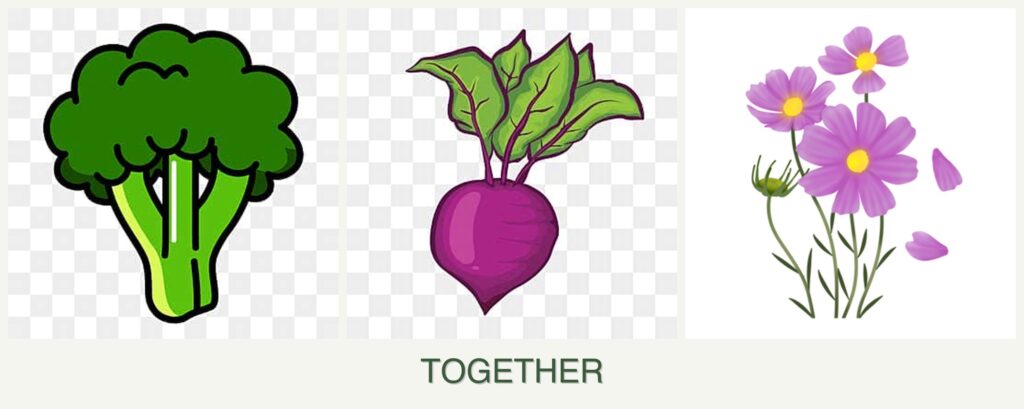 - Soil Health: Beets help break up soil, improving aeration and drainage for broccoli and cosmos.
