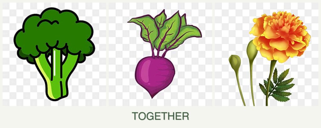 Planting broccoli, beets, and marigolds together offers several benefits: