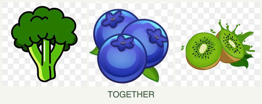 While planting broccoli, blueberries, and kiwi together is not advisable due to their differing needs, each can be paired with other plants for mutual benefits: