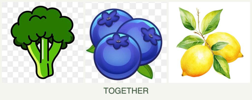 Nutrient Needs: Blueberries have specific nutrient requirements, particularly for acidic soil, which conflicts with the needs of broccoli and lemons.