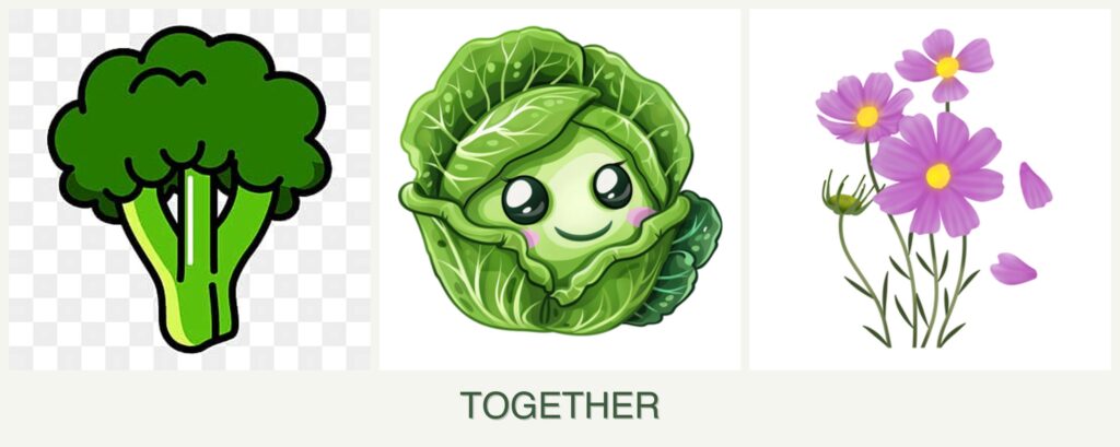 - Growth Requirements: Broccoli and cabbage share similar needs, thriving in cooler temperatures, while cosmos prefer warmer conditions. This can be managed by planting cosmos later in the season or in a sunnier spot.