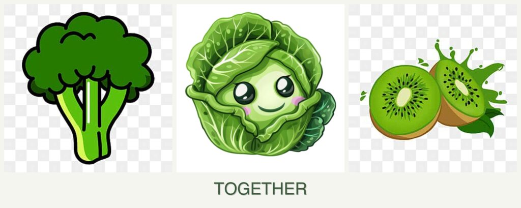 Broccoli and cabbage belong to the Brassica family and have similar growing requirements, making them compatible with each other. However, kiwi, a fruiting vine, has different needs that make it less compatible with these vegetables.