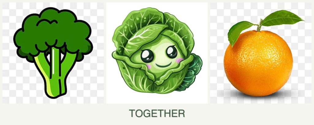 - Resource Competition: Broccoli and cabbage may compete for nutrients, but oranges would exacerbate this issue due to differing needs.