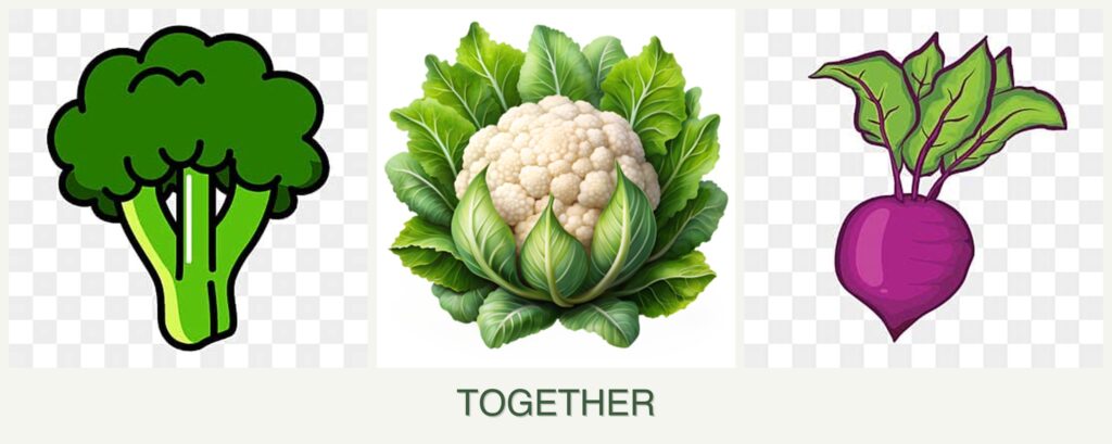 - Growth Requirements: Broccoli and cauliflower thrive in cool weather, needing full sun and well-drained soil. Beets also prefer cool conditions but can tolerate partial shade, making them adaptable companions.