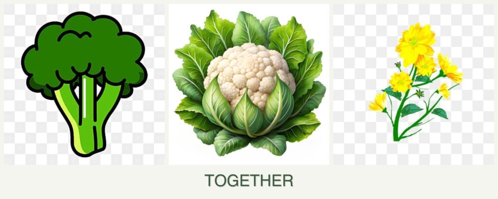 What should not be planted with broccoli and cauliflower?
