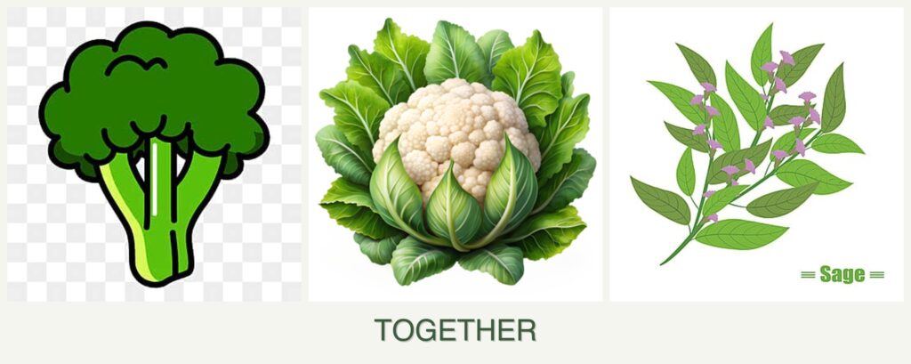 Planting broccoli, cauliflower, and sage together offers several benefits: