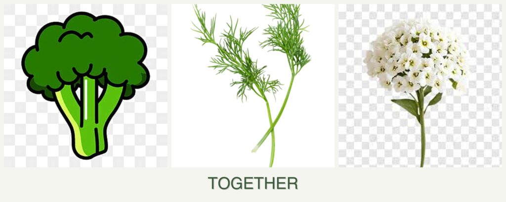 - Improved Flavor and Growth: Dill is believed to enhance the flavor of broccoli, and alyssum’s ground cover helps retain soil moisture.