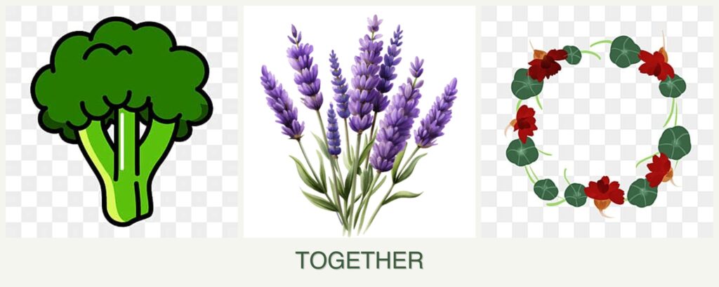 - Pest Repellent Properties: Nasturtiums attract aphids away from broccoli, and lavender deters moths and beetles.