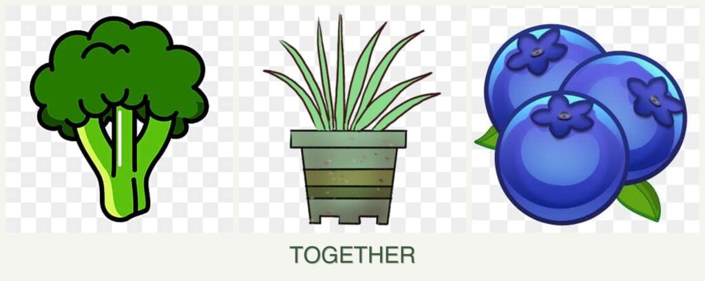 Avoid planting blueberries with non-acid-loving plants like broccoli.