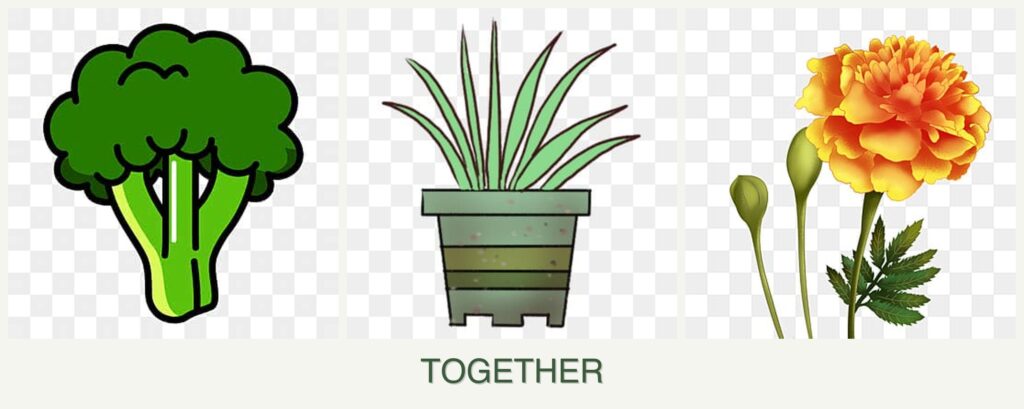 - Pest Repellent: Marigolds deter nematodes and aphids, protecting broccoli.