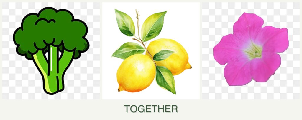 Can you plant broccoli, lemons and petunias together?