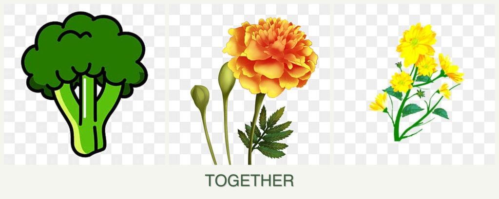 Planting broccoli, marigolds, and calendula together offers several advantages: