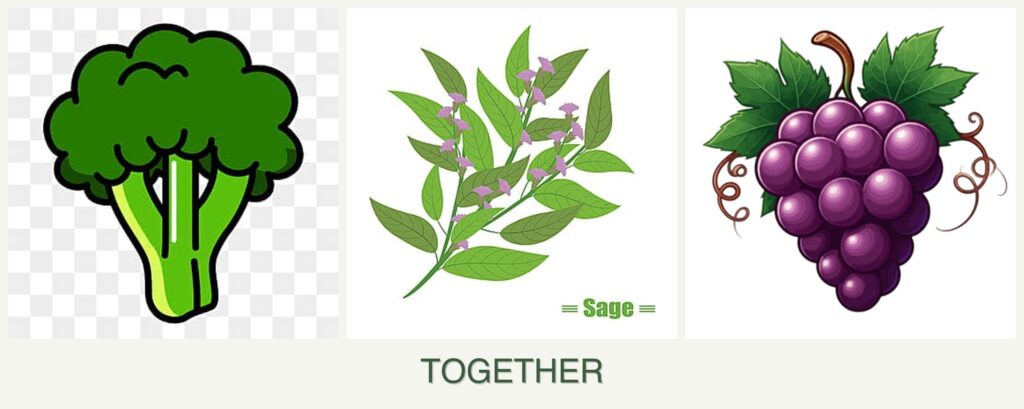 Can you plant broccoli, sage and grapes together?
