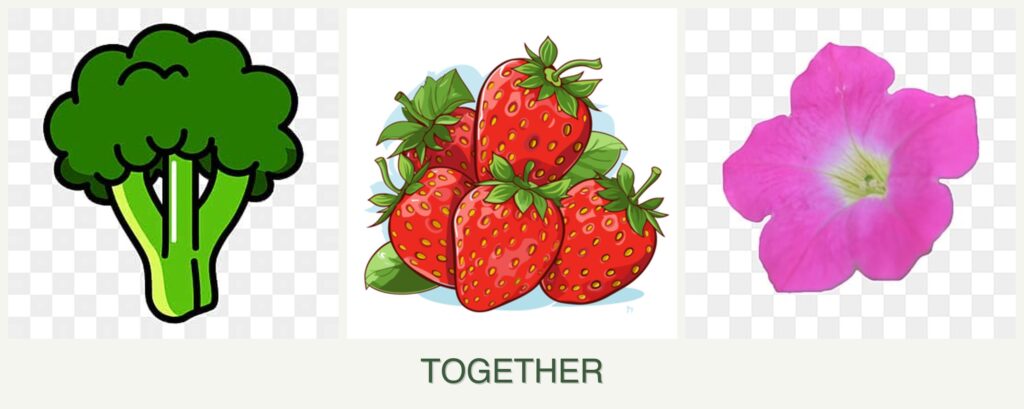 Pest Control: Broccoli can attract pests like cabbage worms, which petunias may help deter. Strawberries can benefit from petunias’ ability to attract pollinators, enhancing fruit production.