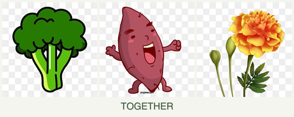 Can you plant broccoli, sweet potatoes and marigolds together?