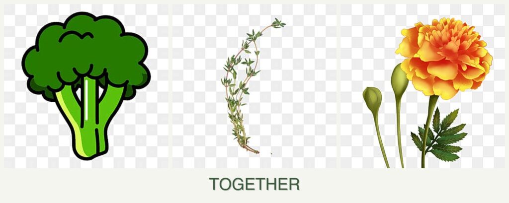 Planting broccoli, thyme, and marigolds together offers several advantages: