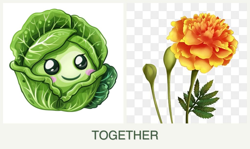 - Pest Repellent Properties: Marigolds emit a scent that deters pests, helping to protect cabbage from insects like nematodes and aphids.