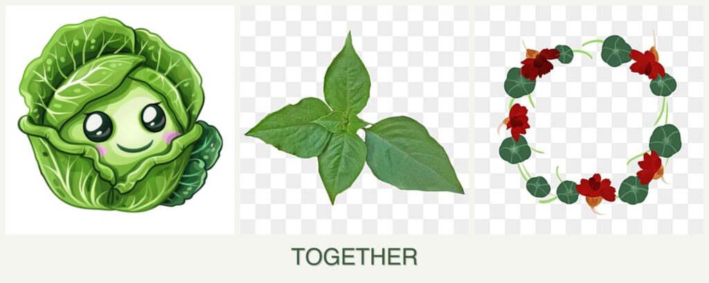 Planting cabbage, basil, and nasturtiums together offers several advantages: