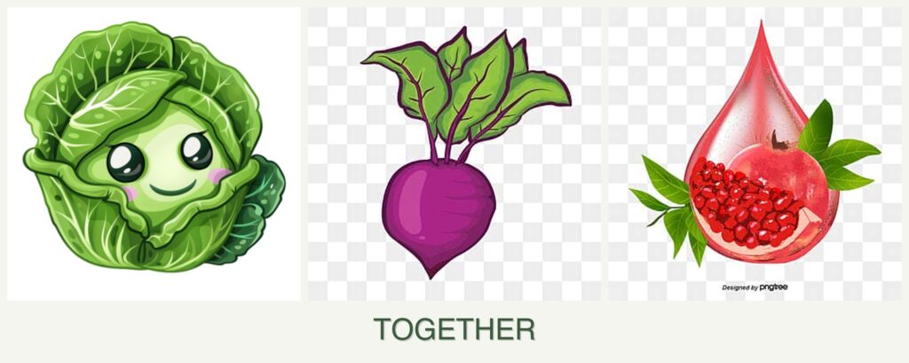 - Pest Control: Cabbage and beets benefit from each other’s pest-repellent properties, but pomegranates do not contribute to this dynamic.