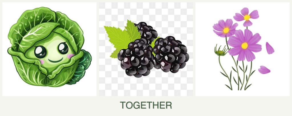 Planting cabbage, blackberries, and cosmos together can offer several benefits: