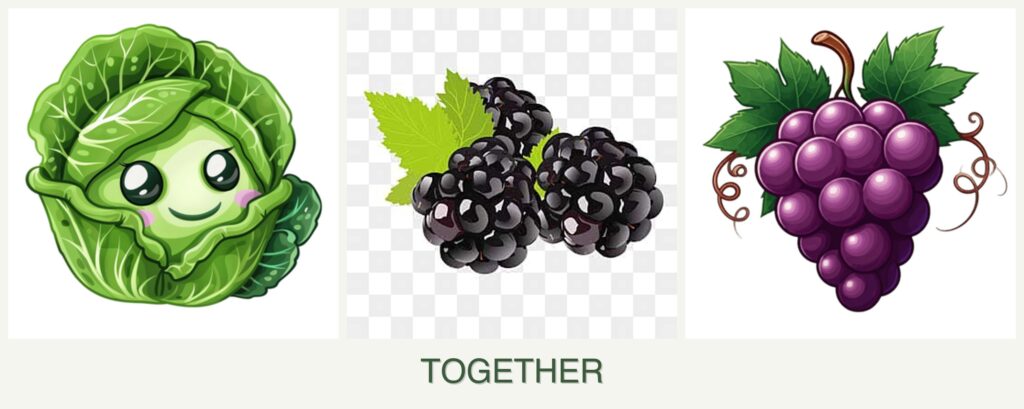 - Pest Control: Cabbage is susceptible to pests like cabbage worms and aphids, while blackberries and grapes can attract different pests such as birds and beetles. These differing pest profiles mean they don’t offer mutual protection.