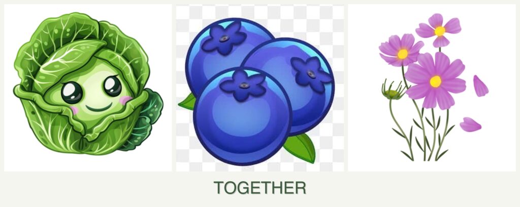 - Disease Susceptibility: Cabbage is prone to diseases that do not affect blueberries or cosmos.