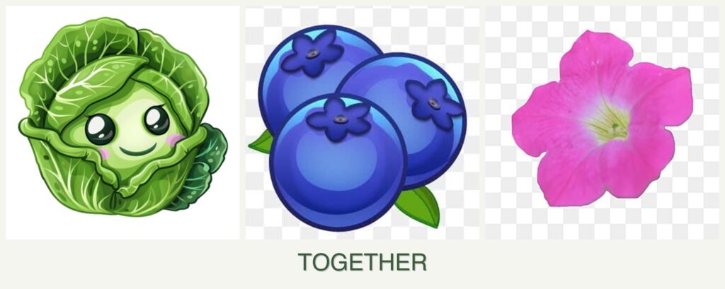 - Spacing: Cabbage requires ample space to grow, which might overcrowd blueberries and petunias.