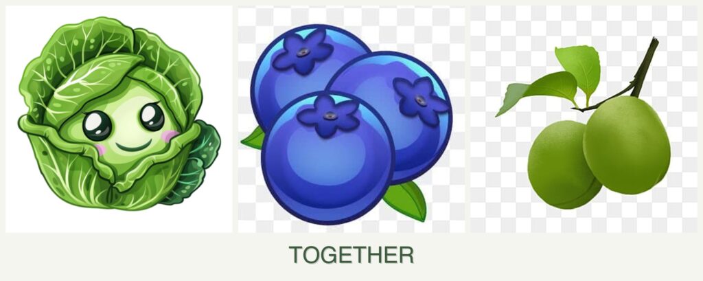 - Pest Control: Cabbage is susceptible to pests like cabbage worms, which do not affect blueberries or plums.