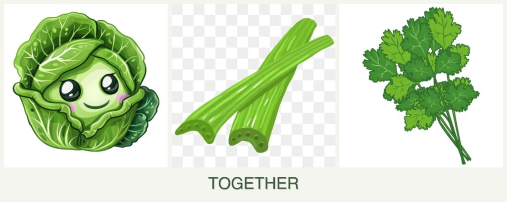 - Growth Requirements: Cabbage and celery thrive in similar conditions, preferring cool temperatures and moist soil. Cilantro, while more heat-tolerant, can also grow in cooler conditions.
