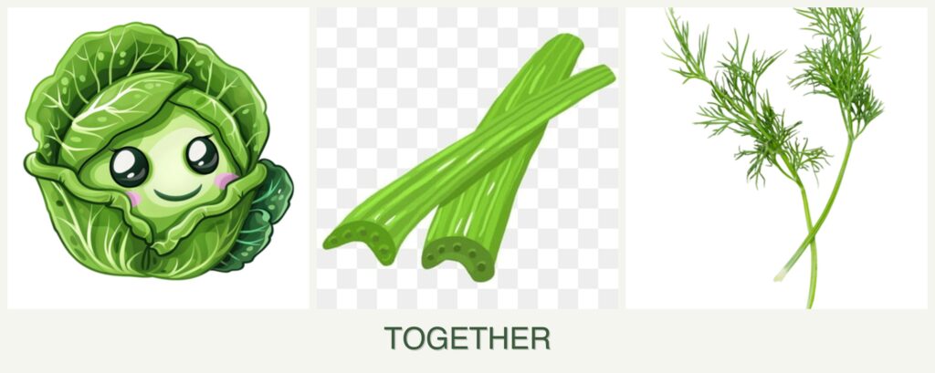 - Growth Requirements: Cabbage, celery, and dill all thrive in similar conditions, preferring cool weather and moist, well-drained soil.