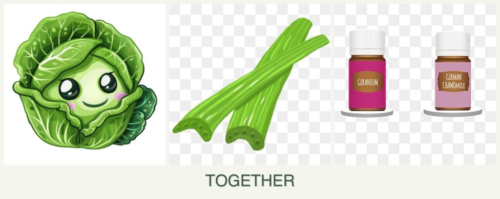 Planting cabbage, celery, and geraniums together offers several benefits: