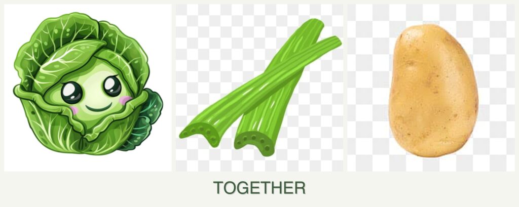 - Growth Requirements: Cabbage and celery prefer cooler temperatures, while potatoes can tolerate a wider range of conditions.