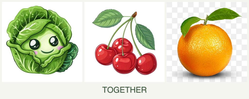 - Growth Requirements: Cabbage prefers cooler climates, while cherries and oranges need warmth.