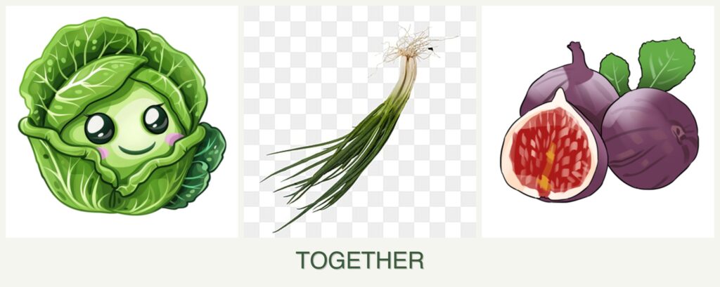 Growth Requirements: Cabbage and chives thrive in similar conditions, preferring full sun and well-drained soil. Figs, however, require more space and slightly different soil conditions.