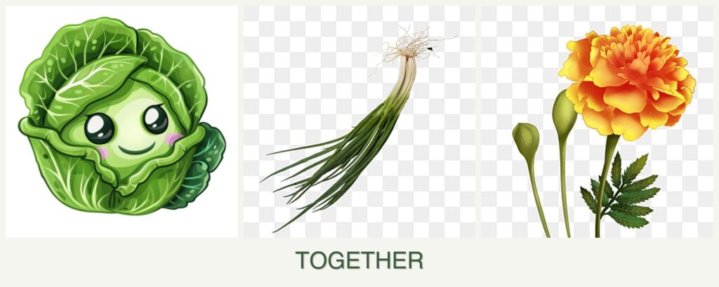 - Pest Repellent Properties: Chives and marigolds act as natural pest deterrents, protecting cabbage from harmful insects.