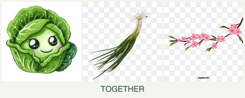 Growth Requirements: Cabbage and chives thrive in similar conditions, preferring cooler temperatures and well-drained soil. Peaches, however, require more warmth and a different soil pH.