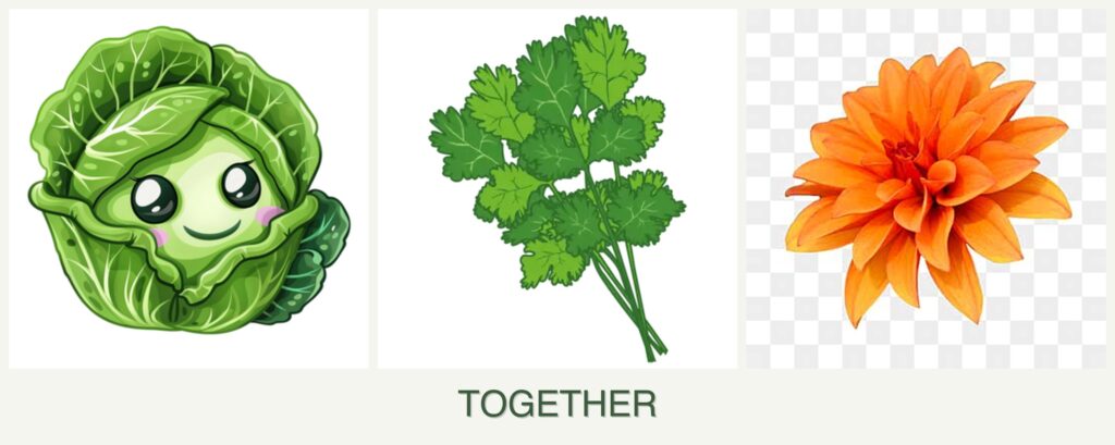 - Timing: Plant cabbage and cilantro in early spring or fall, while dahlias should be planted after the last frost.