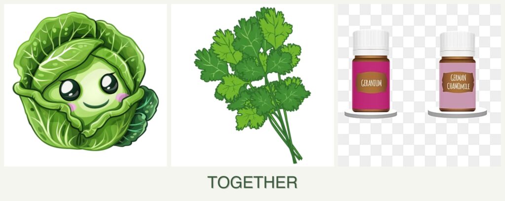 - Growth Requirements: Cabbage and cilantro prefer cooler temperatures, while geraniums thrive in warmer conditions and full sun.
