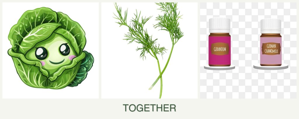 - Space Efficiency: These plants can be arranged to maximize garden space, with dill’s upright growth complementing the bushier habits of cabbage and geraniums.