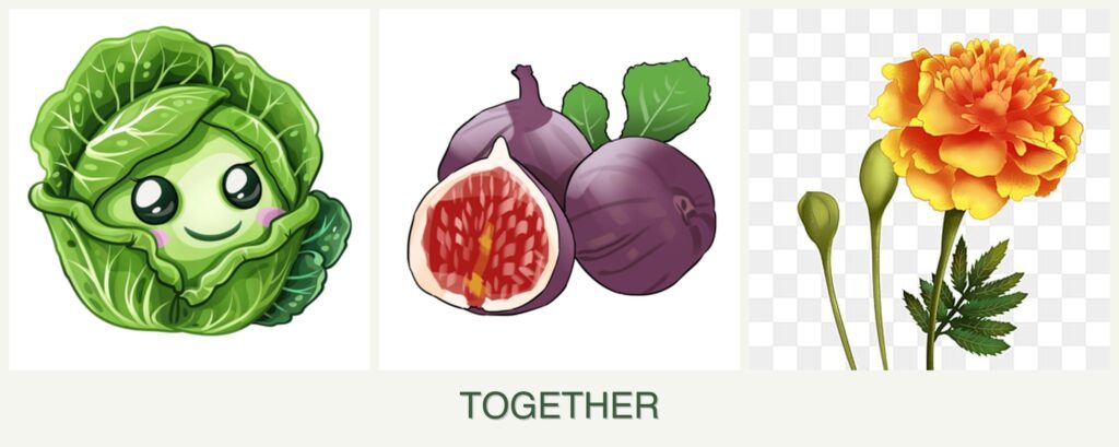 Planting cabbage, figs, and marigolds together can offer several benefits: