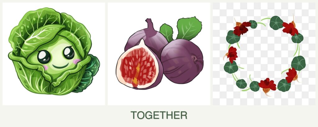 - Growth Requirements: Cabbage prefers cool weather, figs need warmth, and nasturtiums are adaptable.