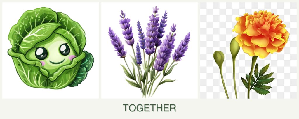 Planting cabbage, lavender, and marigolds together offers several advantages: