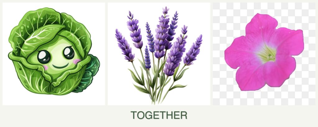 Can you plant cabbage, lavender, and petunias together? The short answer is no. These plants have differing needs that make them incompatible for close planting.