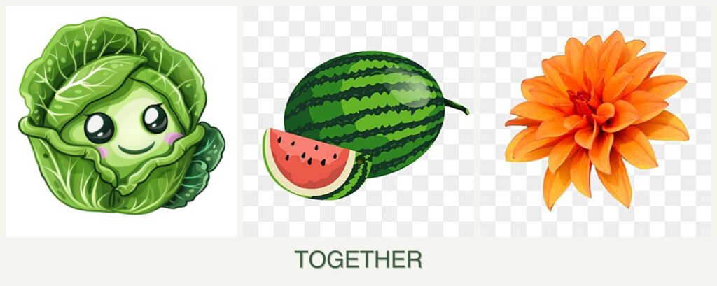 - Different Watering Needs: Melons require more water than dahlias and cabbage.