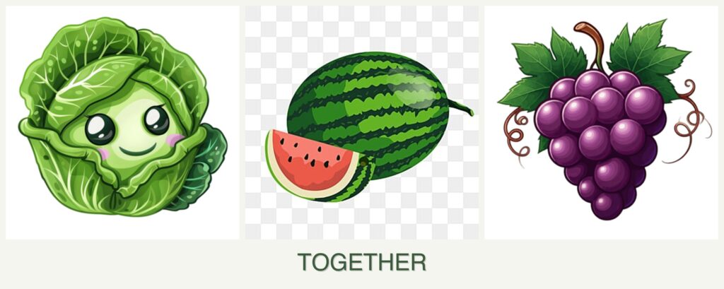 Can you plant cabbage, melons and grapes together?